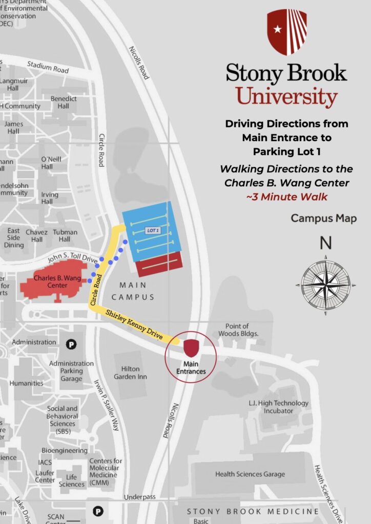 By Train: Stony Brook Station is located along the Long Island Rail Road, Port Jefferson line. From Penn Station in Manhattan, travel time is approximately one and a half hours. A free shuttle service is available at Stony Brook Station to the Wang Center.
